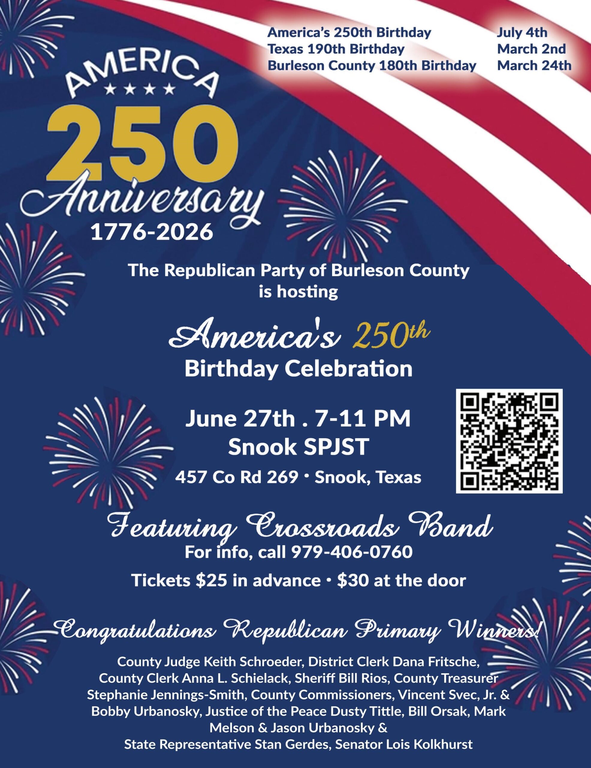 If you are looking to get involved in politics and to help steer Burleson County in the right direction, I invite you to join the team.